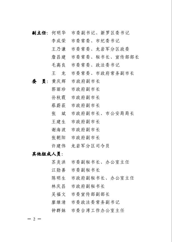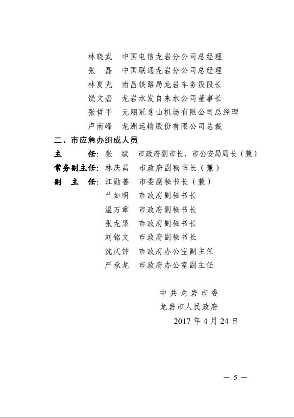 市委關于調整龍巖市突發(fā)事件應急委員會及龍巖市突發(fā)事件應急委員會辦公室成員的通知(巖委【2017】40號)