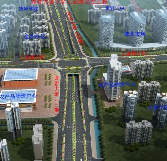 龍巖大道工業(yè)路下穿通道項(xiàng)目位于龍巖大道與工業(yè)路交叉口,為現(xiàn)狀龍巖大道三期道路上設(shè)置下穿通道,起始于規(guī)劃支路農(nóng)產(chǎn)品物流配送中心路口,終止于龍巖大道四期龍巖第一技師學(xué)院東側(cè),全長(zhǎng)383米,其中框架涵長(zhǎng)度80米,U型槽長(zhǎng)度303米,地道凈寬2×13米,雙向六車(chē)道。主通道兩側(cè)設(shè)置兩道南北向人行地下通道,人行通道斷面型式:5×3.5米,主通道長(zhǎng)124米,梯道長(zhǎng)128米,總投資約2億元。