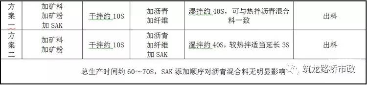 添加集料的同時(shí)將固體溫拌劑投入拌鍋攪拌均勻,盡量采用自動(dòng)稱量添加設(shè)備,也可以采用人工投放方式,但用量必須控制準(zhǔn)確,固體溫拌劑摻量為瀝青用量的3%(外摻法,質(zhì)量比)。如果為人工投放,可預(yù)先準(zhǔn)備好每盤料用量的容器,提高投放效率,也可預(yù)先稱量好拌和樓每盤料所需固體溫拌劑用量,分成小袋直接投放。