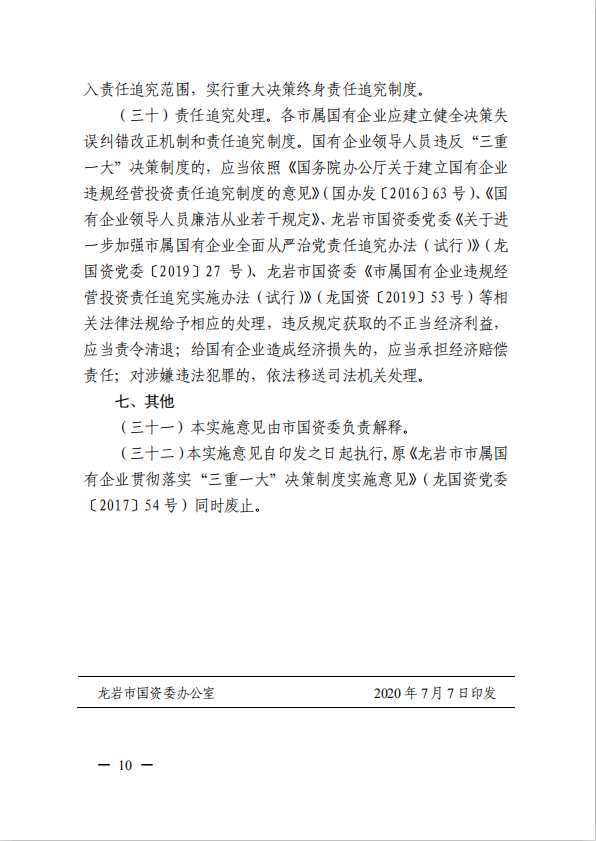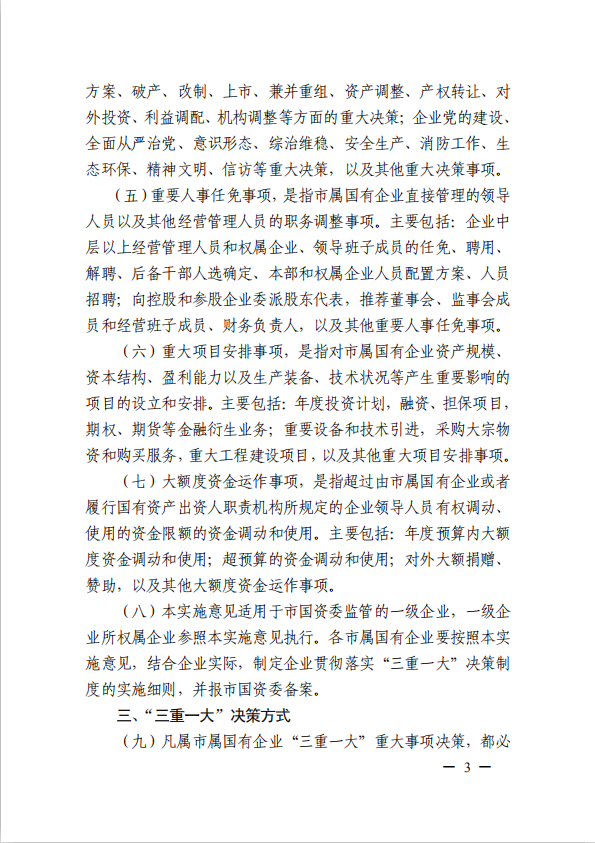 關于進一步規(guī)范市屬國有企業(yè)貫徹落實“三重一大”決策制度實施意見(國資黨委[2020]21號)